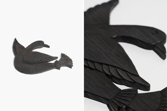 おどけたように愛らしく羽ばたく姿を空想しながら彫り上げられています。