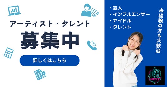芸人・インフルエンサー・アイドル・ミュージシャン・タレントなど、ジャンルを超えた人材を広く募集。