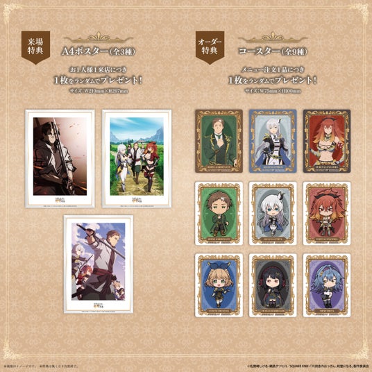 店内では、正装姿のキャラクターたちの新規描き下ろしイラストを使用した装飾やグッズ、「剣聖の晩餐会~王都ノ夜ノ祝宴~」をテーマにした限定メニューなどをご用意。