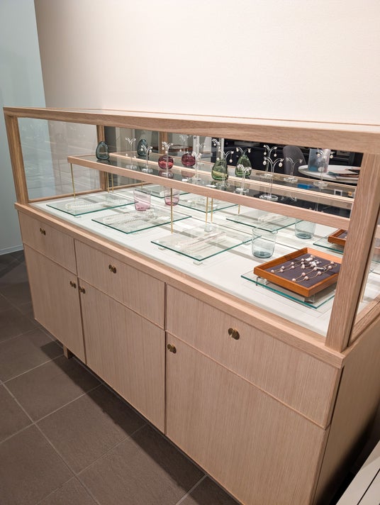 店内のご相談スペースでは、初めて真珠をご購入になる方も、時間をかけてじっくりご覧になりたい方も、リラックスしてお過ごしいただけます。