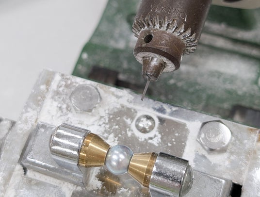 真珠の穴あけ作業