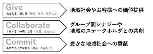 「與」という文字は「与える・与する・与る」、「くみする、仲間になる」、「あずかる、かかわる」という意味を持っており、それぞれ「地域社会やお客様への価値提供」、「グループ間シナジーや地域のステークホルダーとの共創」、「豊かな地域社会への貢献」と解釈できると考えております。