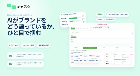 株式会社ポストデータは、AI検索時代におけるブランド露出を可視化し、改善につなげるAEO・GEO分析プラットフォーム「キャスク」を提供開始したことをお知らせします。