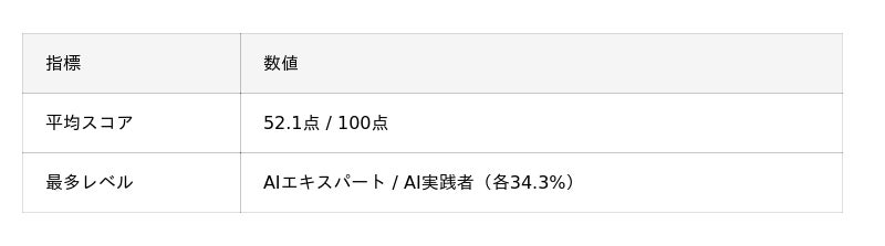 - 最も得意: AI活用習慣(平均16.0/25点)- AIツールの日常的な使用は浸透