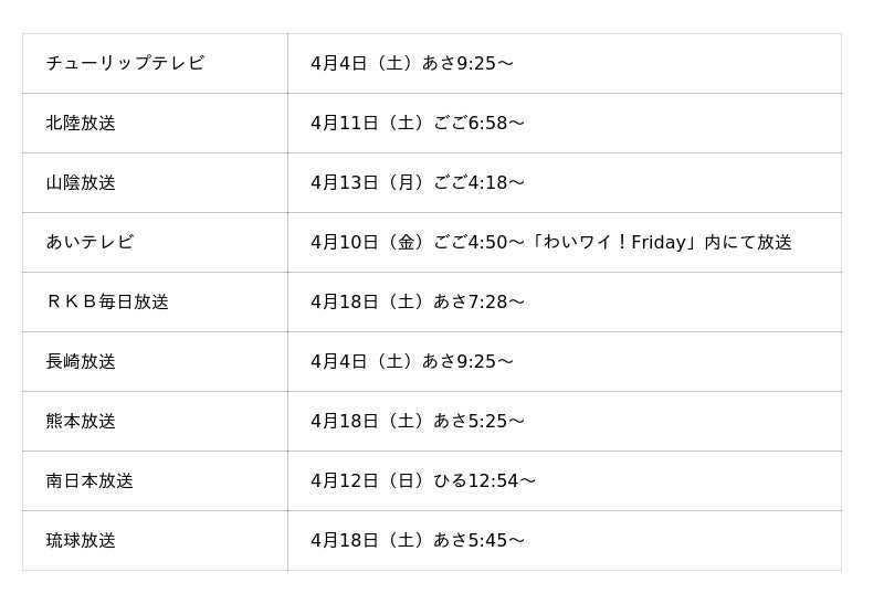 4月4日(土)あさ9:25からTBSにて放送開始。