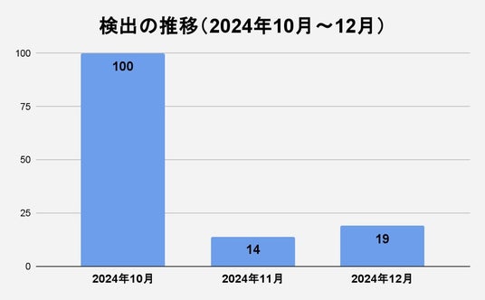 図2 検出の推移(2024年10月~12月)※2024年10月を100とした場合で算出