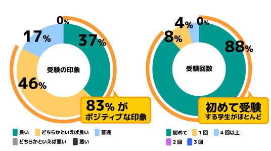 - 応募者体験:受験者アンケートでは83%が好印象、自身の経験や強みを表現しやすい選考にアンケートを実施したところ、AI面接の受験が初めてという学生が大半を占める中、83%が「良い」「どちらかといえば良い」と回答。「新しい形式で興味深い体験だった」「経験を振り返る機会になった」といった前向きな評価が寄せられ、応募者それぞれが自身の経験や考えを整理し、多角的な自己表現につながる選考体験となったことがうかがえます。また、「AI面接に慣れておらず戸惑った」「録画・録音への緊張・不安」といった声もあり、人の面接と同様の準備で臨めることや、質問は何度でも聞き直せることなど、事前案内を充実させることで、受験者の不安解消を図ります。