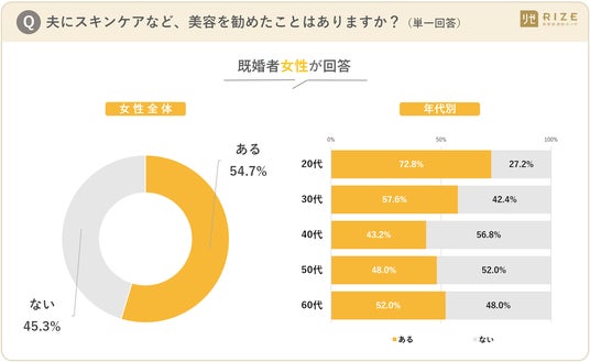 ◎20代が最多で7割が「夫に美容を勧めたことがある」結果に(72.8%)◎60代も半数が「夫に美容を勧めたことがある」ことが判明(52.0%)