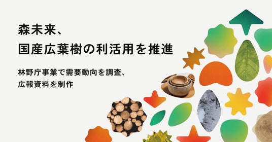 「Sustainable Forest」をミッションとする株式会社森未来(本社:東京都港区、代表取締役:浅野 純平 以下、森未来)は、林野庁が実施する「国産広葉樹のニーズ調査及び利活用に向けた広報資料の作成事業」において、パンフレットおよびコンセプトムービーを制作いたしましたことをお知らせいたします。