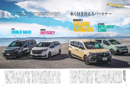 グランカングーのライバルとして、同じ輸入3列MPVのシトロエン・ベルランゴロング、フィアット・ドブロマキシ。そして国産MPVからホンダ・オデッセイを駆りだしての比較試乗を行います。