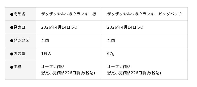 ザクザクやみつきクランキー板・ビッグパウチも発売!
