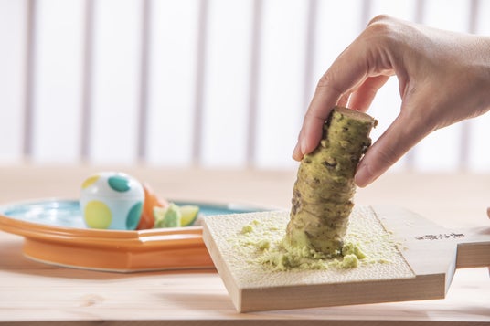 肉厚で銀色に輝く群馬ブランドの最高級ニジマス。おろしたての本わさびとともに。
