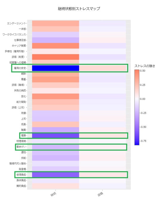- 雇用の安定性・葛藤・働きがい・感情負担に関するストレスは離職リスク因子になり得る