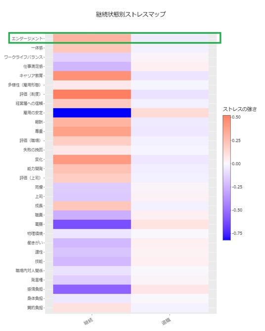 人事領域では「エンゲージメントが高ければ離職リスクが下がる」という考えが通説となっていますが、上記の結果は「エンゲージメント」の内容に着目すべきであるという示唆を与えるものです。