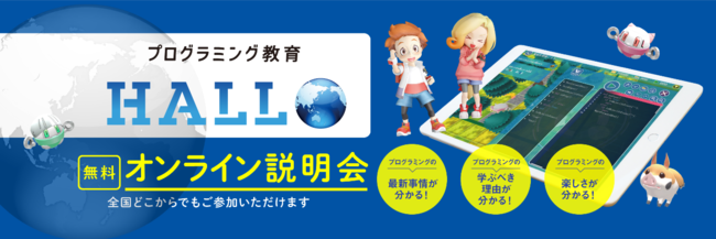 プログラミング教育の重要性、HALLO の特長などをご紹介。全国どこからでもご参加可能なオンライン説明会