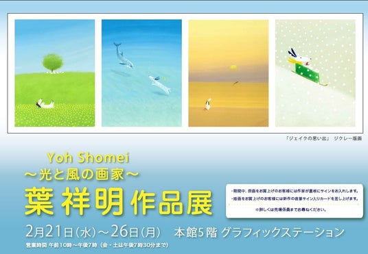 【鶴屋百貨店】光と風の画家「葉祥明 作品展」2/21(水)~2/26(月)まで 作家の故郷 熊本で開催。貴重な原画と新作版画〈ジェイクの思い出〉も登場