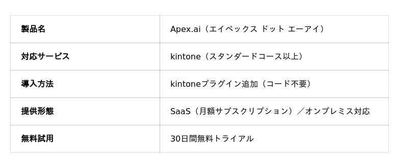 ■kintoneプラグイン「Apex.ai」の概要