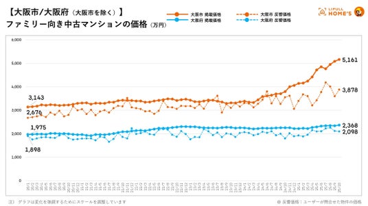 大阪市中心6区がファミリー向け中古マンション・一戸建ての掲載価格を牽引して上昇中