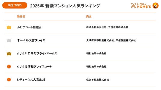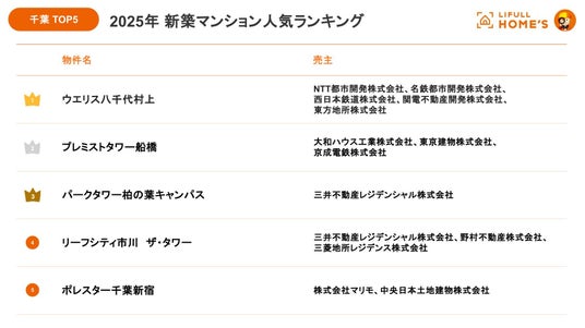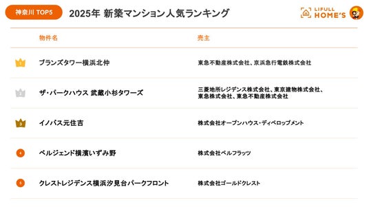 LIFULL HOME'Sが「2025年 新築マンション人気ランキング」を発表