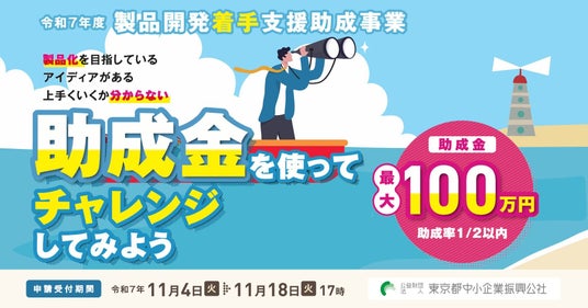 公益財団法人 東京都中小企業振興公社(本社:東京都千代田区、理事長:中西 充)は、新たな製品・技術開発を促進することを目的として、都内の中小事業者等を対象に「製品開発着手支援助成事業」の事前エントリーを11月18日(火)17時まで受け付けます。