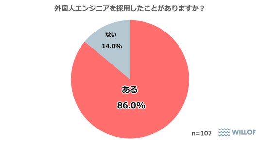 1. 86.0%が「外国人エンジニアを採用したことがある」と回答。国内のエンジニア人材不足が影響か