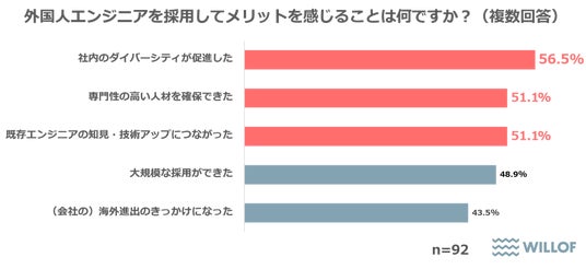 外国人エンジニアの採用で感じるメリットは「社内のダイバーシティが促進したこと」