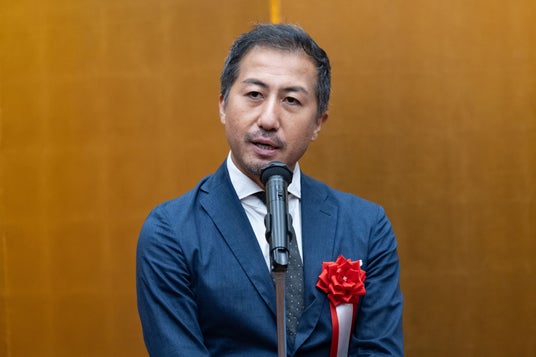 本日は本当に素敵な賞をいただき、誠にありがとうございます。一昨日までドラえもんの仕事で香港に出張しておりました。ドローンショーでドラえもんが映し出されると、「ドラえもん!」という現地の方々の声が上がっており、私はドラえもんという世界の端で関わっているに過ぎませんが、本当に素敵な世界に携われているのだと実感いたしました。