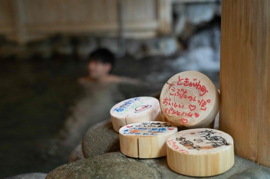 2025年都道府県魅力度ランキングで全国最下位となった埼玉県ですが、知られていない魅力がたくさんあります。「I Love 埼玉県風呂」では、埼玉県内の全市町村の名産や自慢できるところ、PRしたいことなどが書かれたヒノキの入浴木が湯船に浮かびます。玉川温泉に来てくださるお客さまに、埼玉県の魅力をヒノキに記入していただき、63市町村の魅力を集めました。