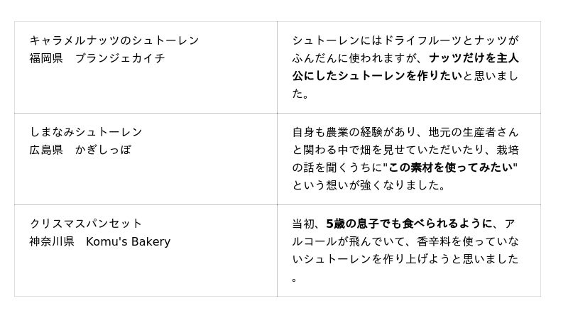 特に今年は、各パン屋さんに「なぜこのシュトーレンを作ろうと思ったのか」を直接取材。