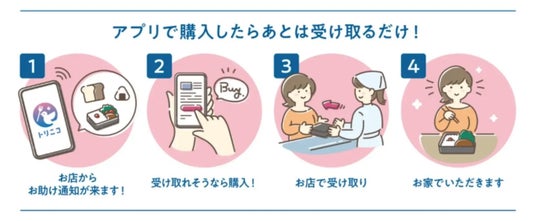 利用者は、アプリで商品をチェックして予約し、閉店前にお店へ受け取りに行きます。