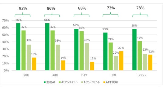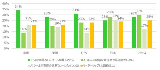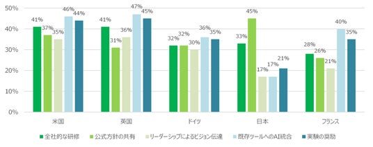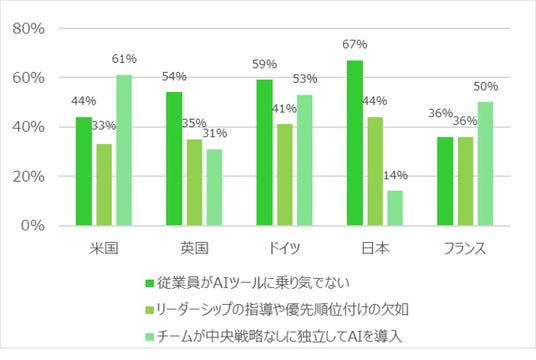 5ヵ国 職場 生成AI利用調査 日本のAI導入は「狭く浅く」、品質と使いやすさを重視する一方、リーダーのビジョン不足が課題に