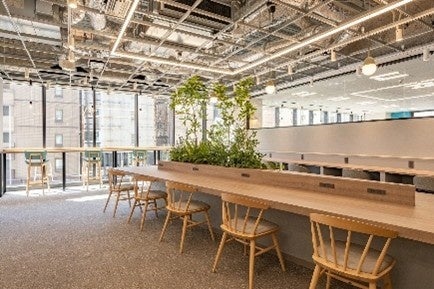 所沢駅徒歩1分の好立地にある大型のBIZcomfort。開放的で自然が感じられるシェアオフィスも、埼玉プランなら使い放題!