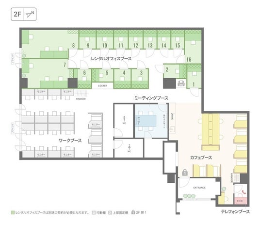 設備 :無線LAN、フリードリンク、無料プリンター、ロッカー、ポスト、登記可、会議室、WEB会議用個室