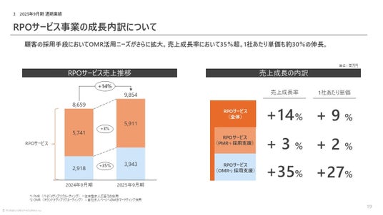 主要事業であるRPO事業の堅実な2ケタ成長を持続。