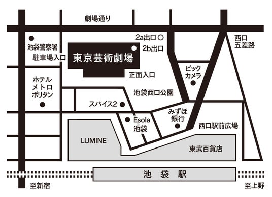 池袋駅はJR、東京メトロ、東武東上線、西武池袋線が乗り入れしており、東京屈指のターミナルとしてアクセスも大変便利です。近隣には多くの商業施設があり、観劇後のお買い物やお食事も存分に楽しんでいただけることでしょう。