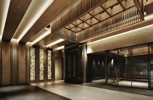 本物件は、板橋の歴史と自然を取り入れ、重厚感と落ち着きが調和するデザインを採用。「街角をつくる穏やかな灯り」をコンセプトに、ライティングにもこだわりました。住まいとしての安らぎや穏やかな夜の景色を演出します。