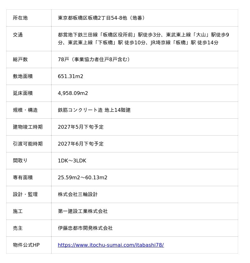 伊藤忠都市開発株式会社(本社:東京都港区、代表取締役社長:松 典男)は、新築分譲マンション「クレヴィア板橋区役所前」について、2025年11月8日(土)より、契約を開始致します。