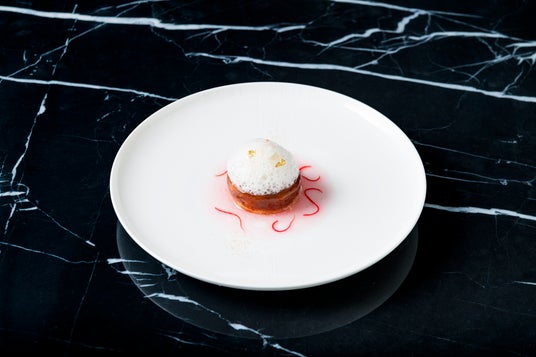 青森県産の香り高い紅玉を使用した、しっとりとしたタルトタタン。上には、クルミの香ばしさを際立たせたアイスクリームと、クルミの香りをまとった軽やかな泡をあしらいました。鮮やかな赤色のソースは、りんごの皮から抽出した自然な色合いで仕上げ、味わいとともに目にも美しいアクセントを添えています。ひと口ごとに、紅玉とクルミの香ばしさが重なり合い、豊かな味覚のハーモニーをお楽しみいただける特別なデザートです。