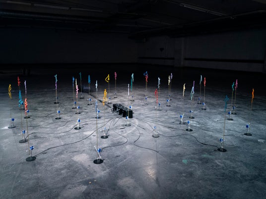 素材の特性や振る舞いにテクノロジーを交差させ、質感を通してナラティブを探究する複数の作品を展示。