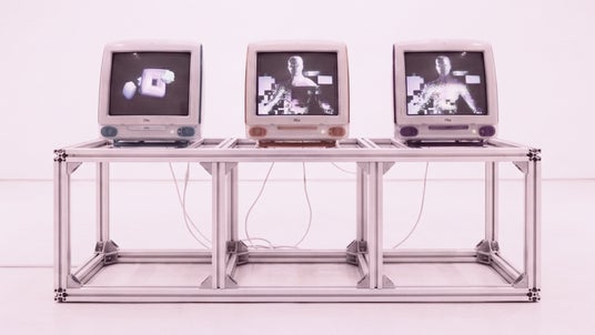 1999年のiMacが四半世紀後の世界と出会う。カメラが捉えた身体はブラウン管の中で抽象的なグラフィックへと生まれ変わり、その痕跡はアーカイブとして蓄積されていく。当時では想像もできなかった表現が過去のスクリーンに現れる。技術と時代、過去と現在--重なり合わない複数の層が同期を外れたまま静かに共振する。