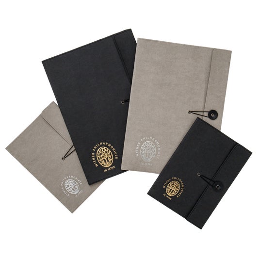 植物由来の洗えるクラフト紙「ウォッシャブルペーパー」を使って、ウィーン・フィルのロゴを箔押しした高級感のあるファイル