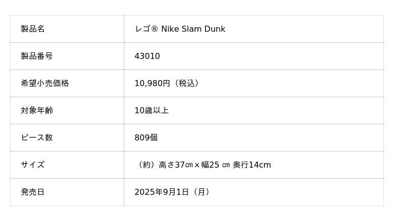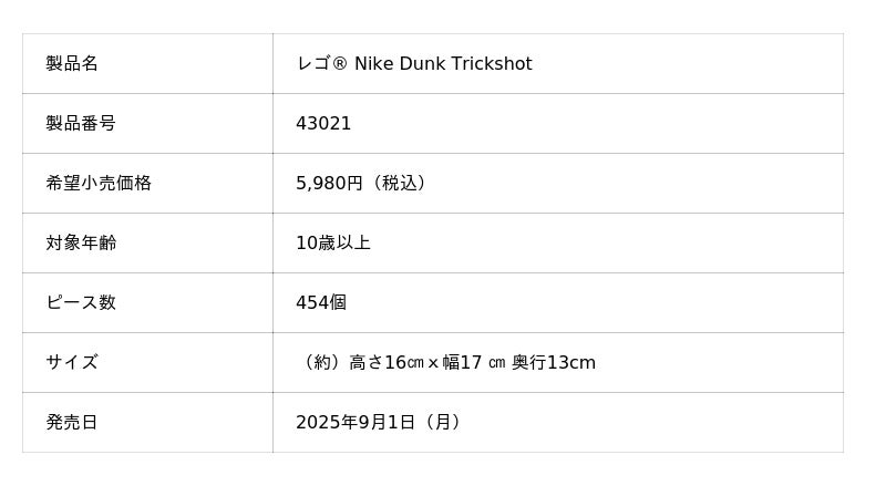 「レゴ(R) Nike Slam Dunk」「レゴ(R) Nike Dunk Trickshot」 2025年9月1日(月)より一般販売開始