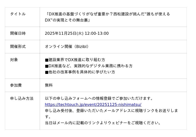 お申し込みはこちら:https://techtouch.jp/event/20251125-nishimatsu/