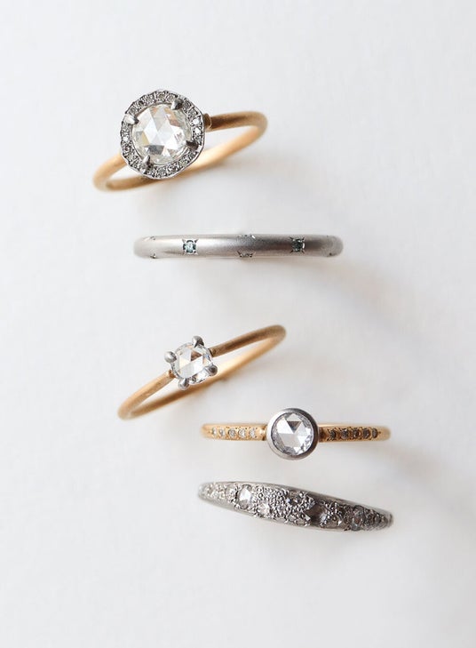 Rinne Ring K18YG・Pt900・ダイアモンド:¥594,000(tax in)Pt900/ブルーダイア:¥275,000(tax in)Prong Ring K18YG・Pt900・ダイアモンド:¥129,800(tax in)Collet Ring K18YG・Pt900・ダイアモンド:¥162,800(tax in)Pt900・ダイアモンド:¥297,000(tax in)