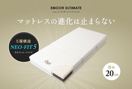 身体に合った「寝る・座る・たたむ」を提供する健康家具ブランドEMOORを展開する株式会社エムール(東京都立川市:代表取締役 高橋 幸司/以下エムール)は、2025年11月7日より、エムール史上最も厚い5層構造のウレタン三つ折りマットレス「エムール アルティメット マットレス(以下エムールアルティメットマットレス)」の販売を開始しました。