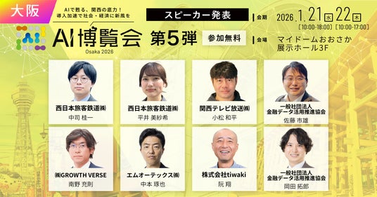 【AI博覧会 Osaka 2026】第5弾スピーカー8名を発表!鉄道、放送、金融のトップランナーが集結。関西から発信するAI社会実装の最前線