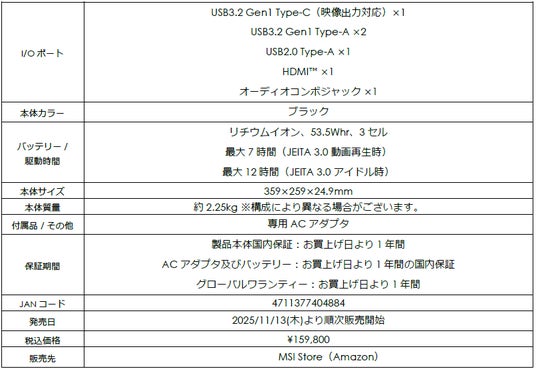 ・Katana A15 AI B8V シリーズ製品ページ:https://jp.msi.com/Laptop/Katana-A15-AI-B8VX