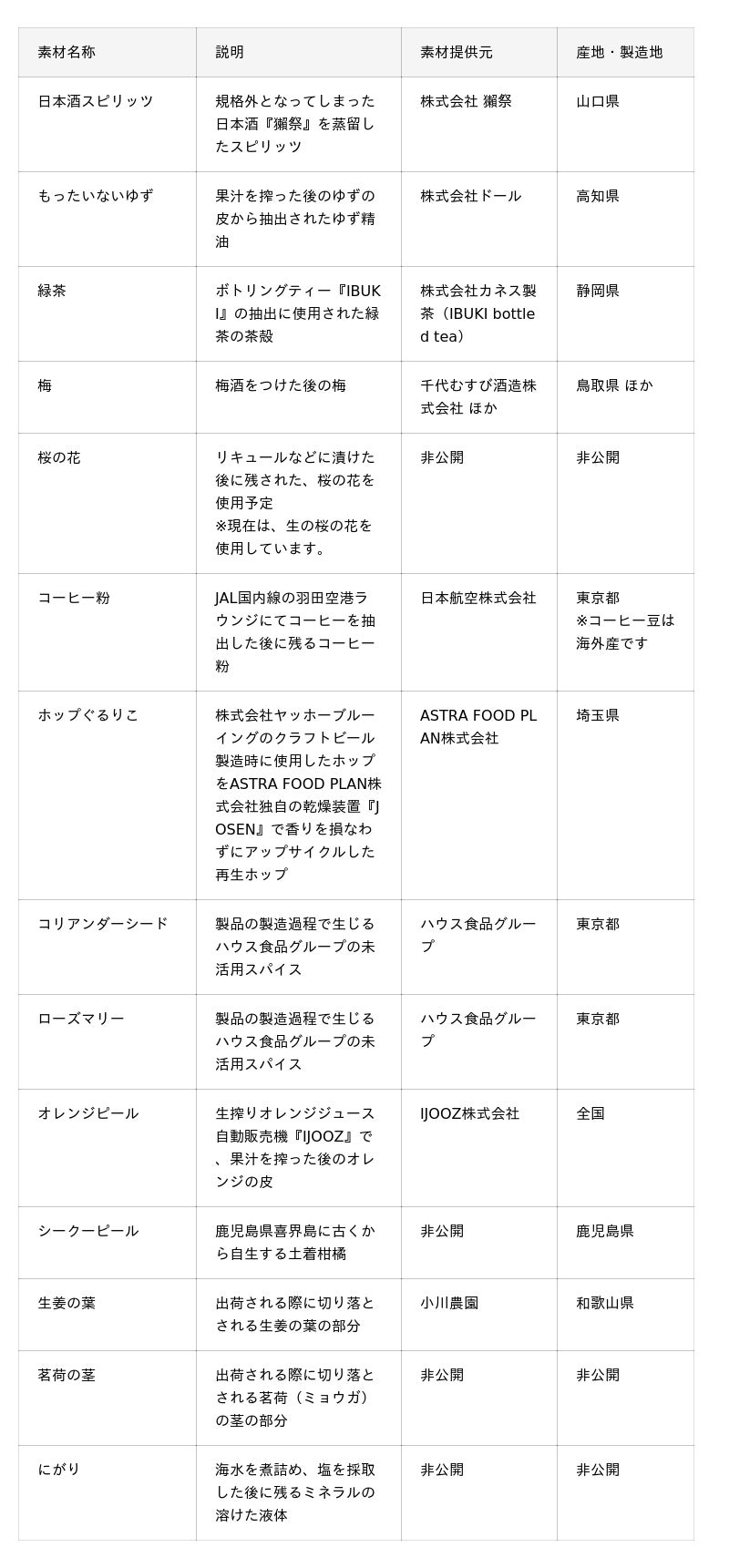 さらに、2026年4月より新発売する『LAST EN -縁-』では、エシカル・スピリッツとして過去最多となる全14種の“もったいない素材”を使用しています。