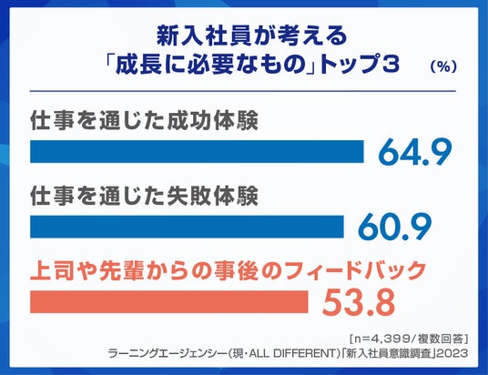 2023年入社の新入社員4,428人を対象にした当社の調査では、「自身が成長するために必要なもの」として半数以上が「上司や先輩からの事後のフィードバック」を挙げています(※2)。