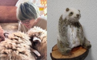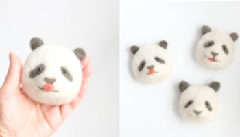 今回のワークショップでは、羊毛・糸のなかの「羊毛」を使い、スポンジシートで型を作りニードルという道具を使用してパンダの顔を作ります。制作の際に残った材料や使用した道具はお持ち帰りいただけます。ご自宅でも制作をお楽しみください。